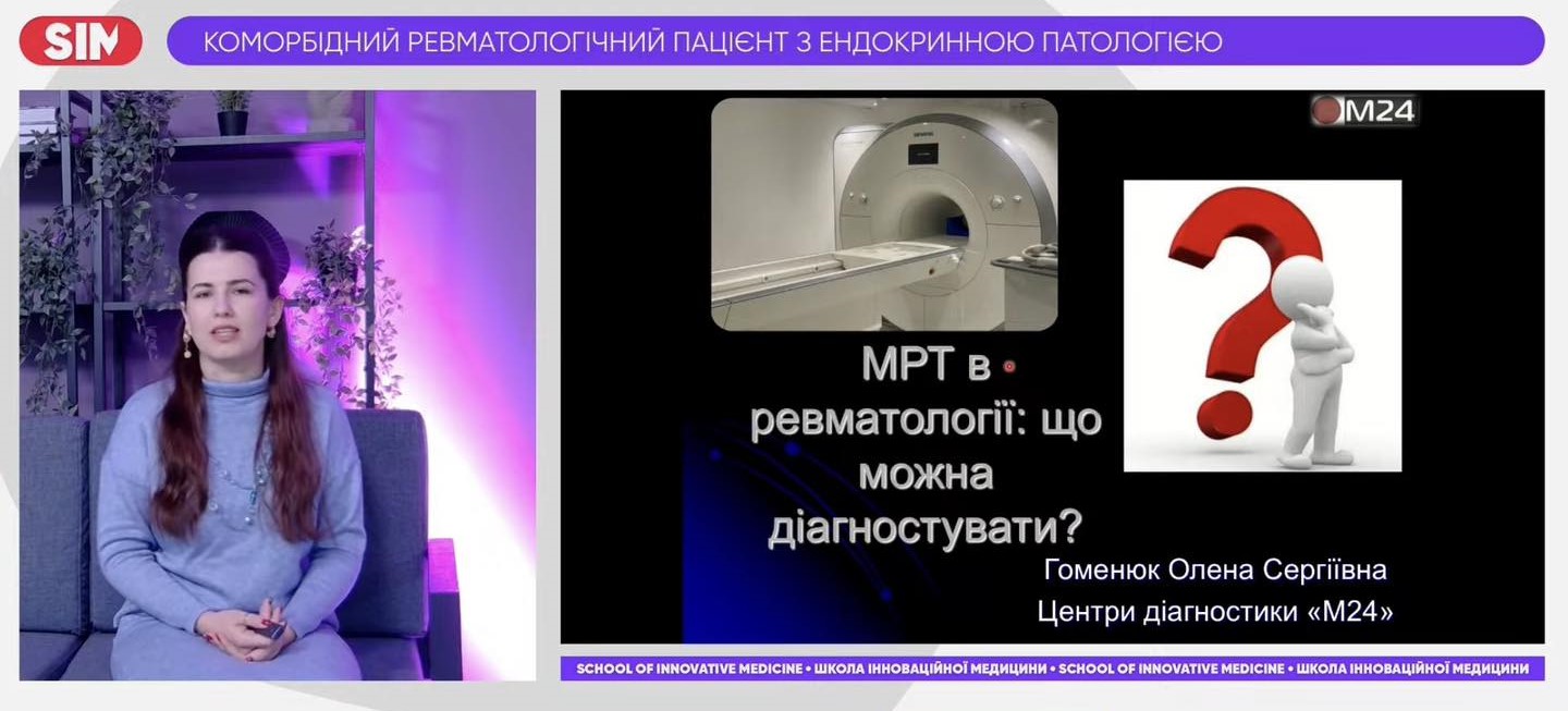 відбулася конференція від Школи інноваційної медицини на тему «Коморбідний ревматологічний пацієнт з ендокринною патологією». Спікер М24, лікар-рентгенолог Гоменюк Олена Сергіївна виступила з доповіддю «МРТ в ревматології: що можна діагностувати?».